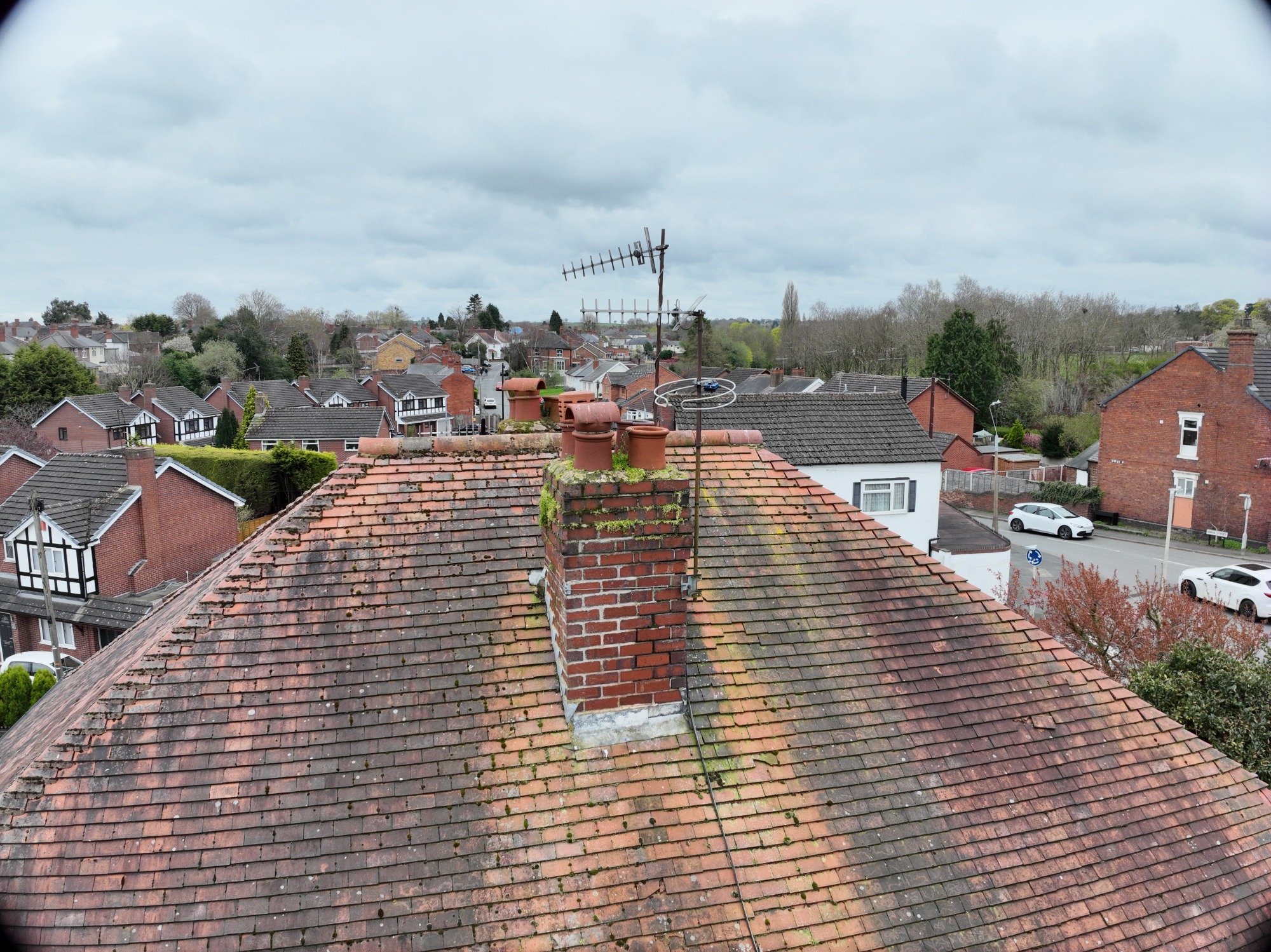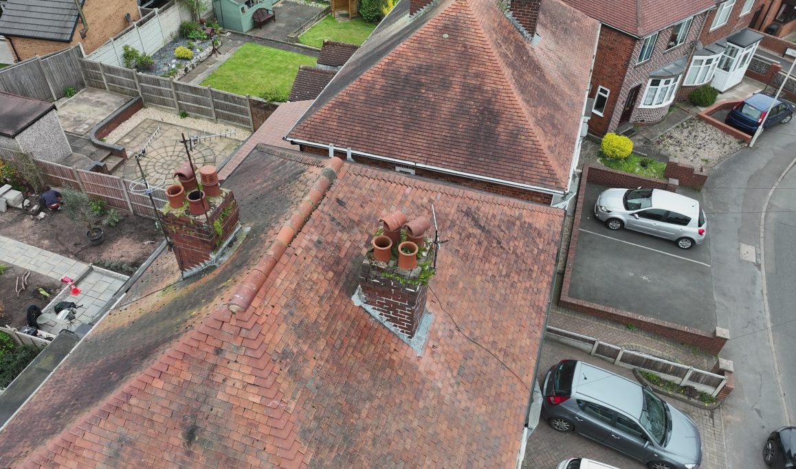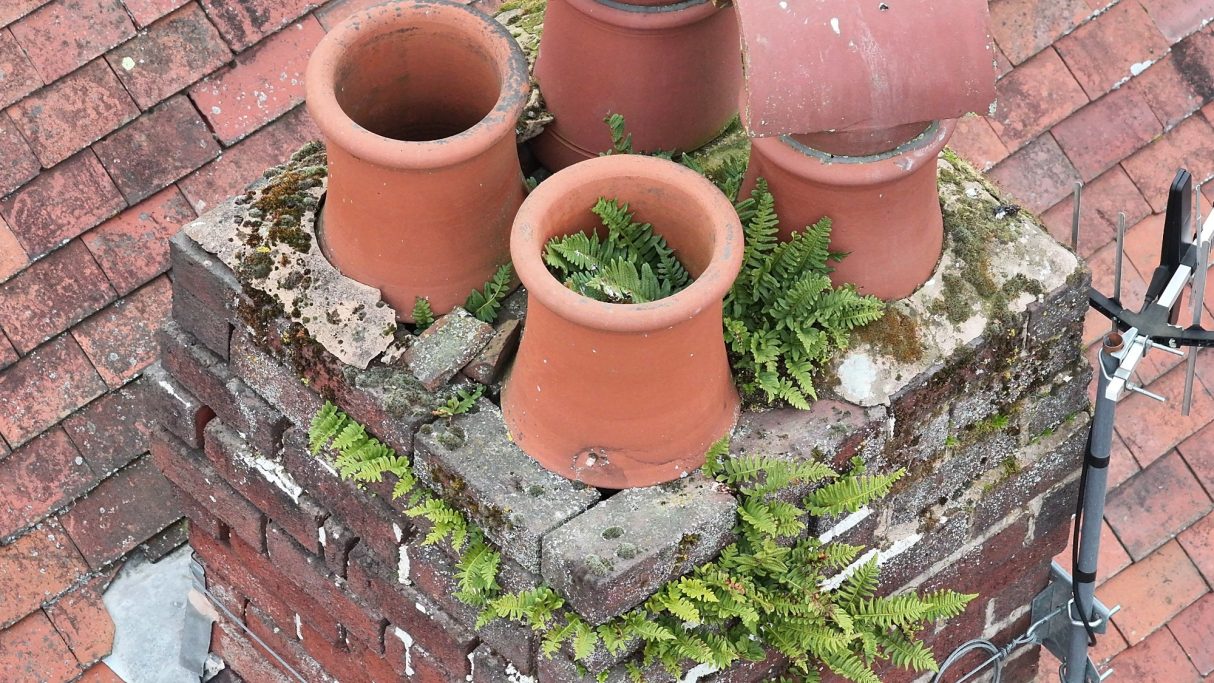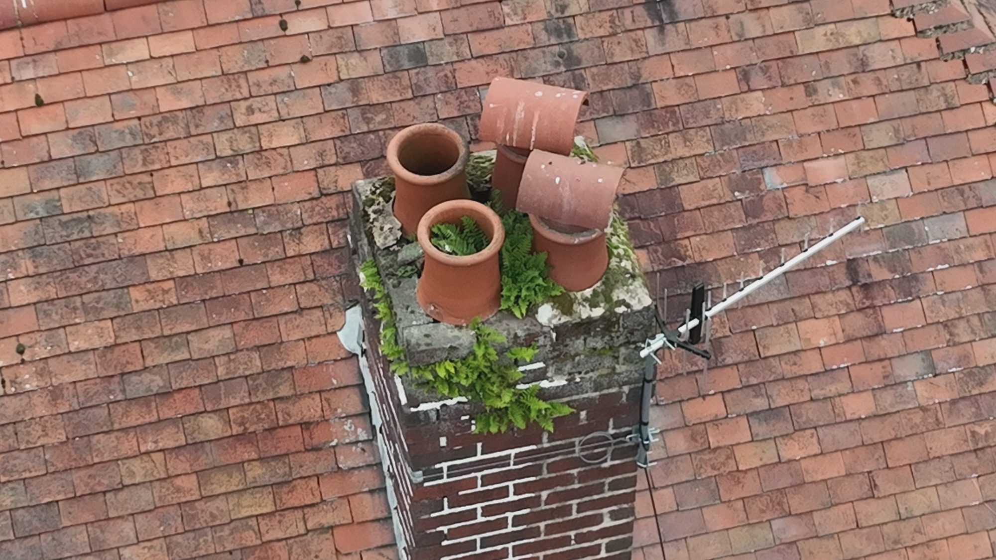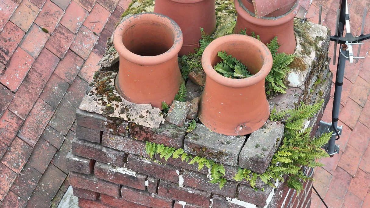 The images displayed below derive from a comprehensive survey of a domestic roof. During this assessment, the client noted the presence of vegetation on the communal chimney pots of the building.